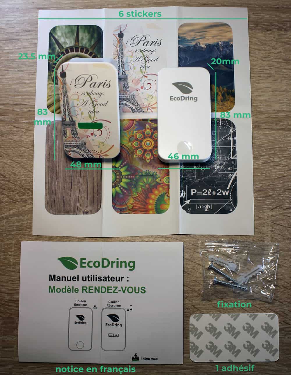 - BONUS unique : La sonnette Rendez-Vous sans fil sans pile s’adaptera merveilleusement bien à votre intérieur grâce aux 6 stickers fournis.
