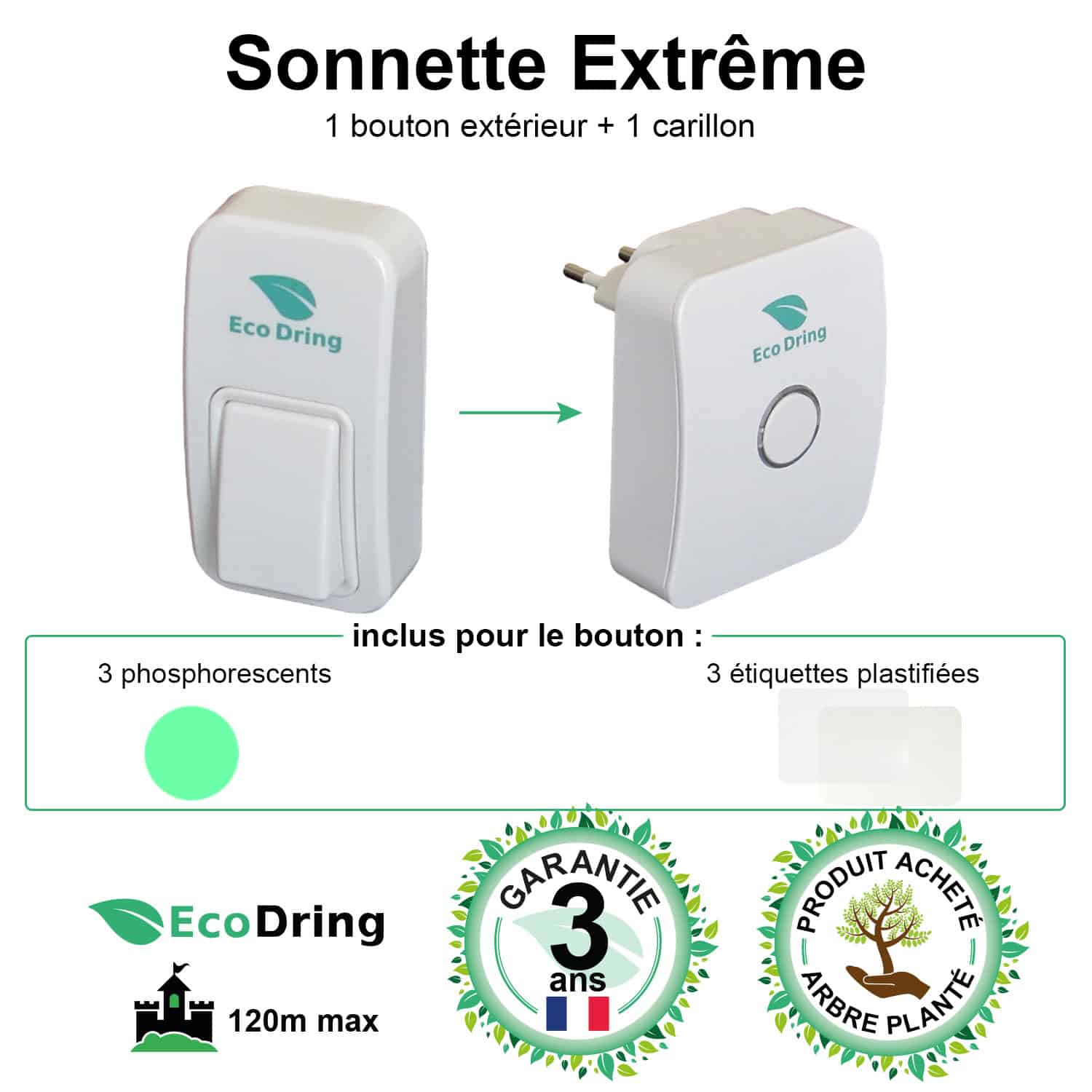 Option : Carillon récepteur + Bouton émetteur : Modèle EXTREME